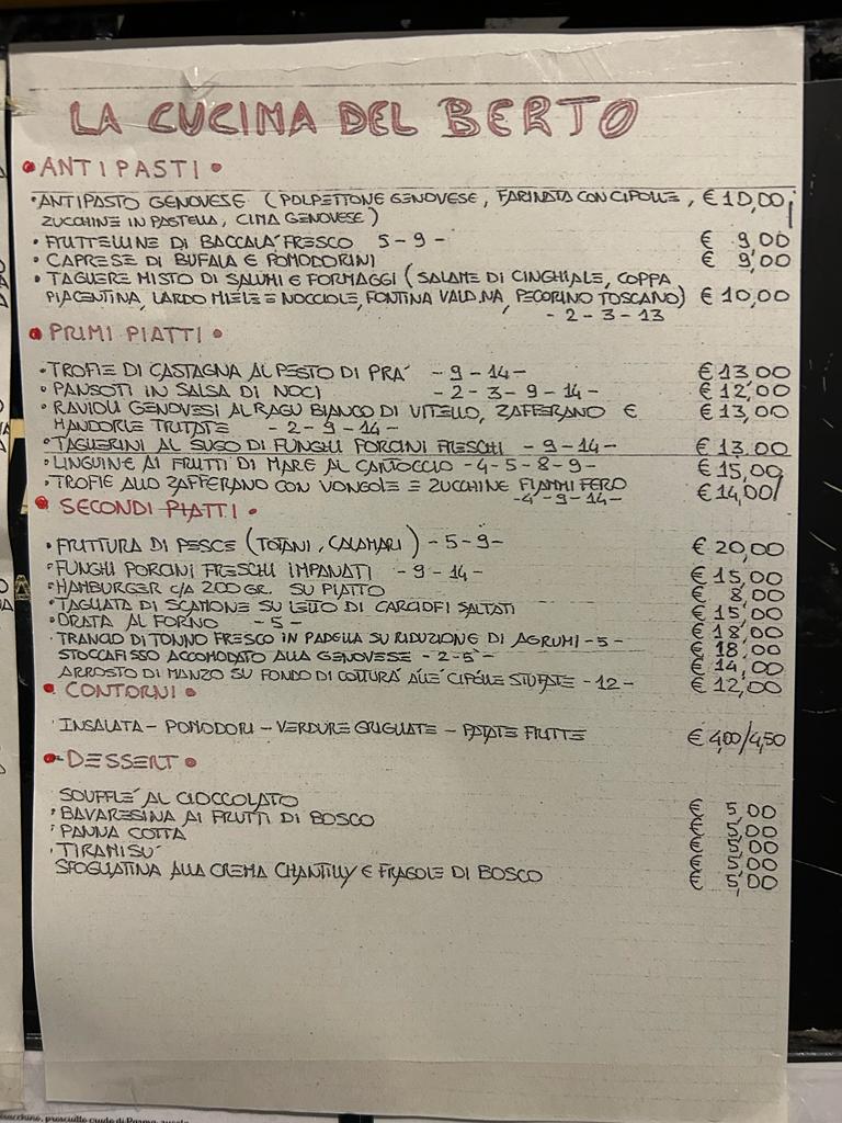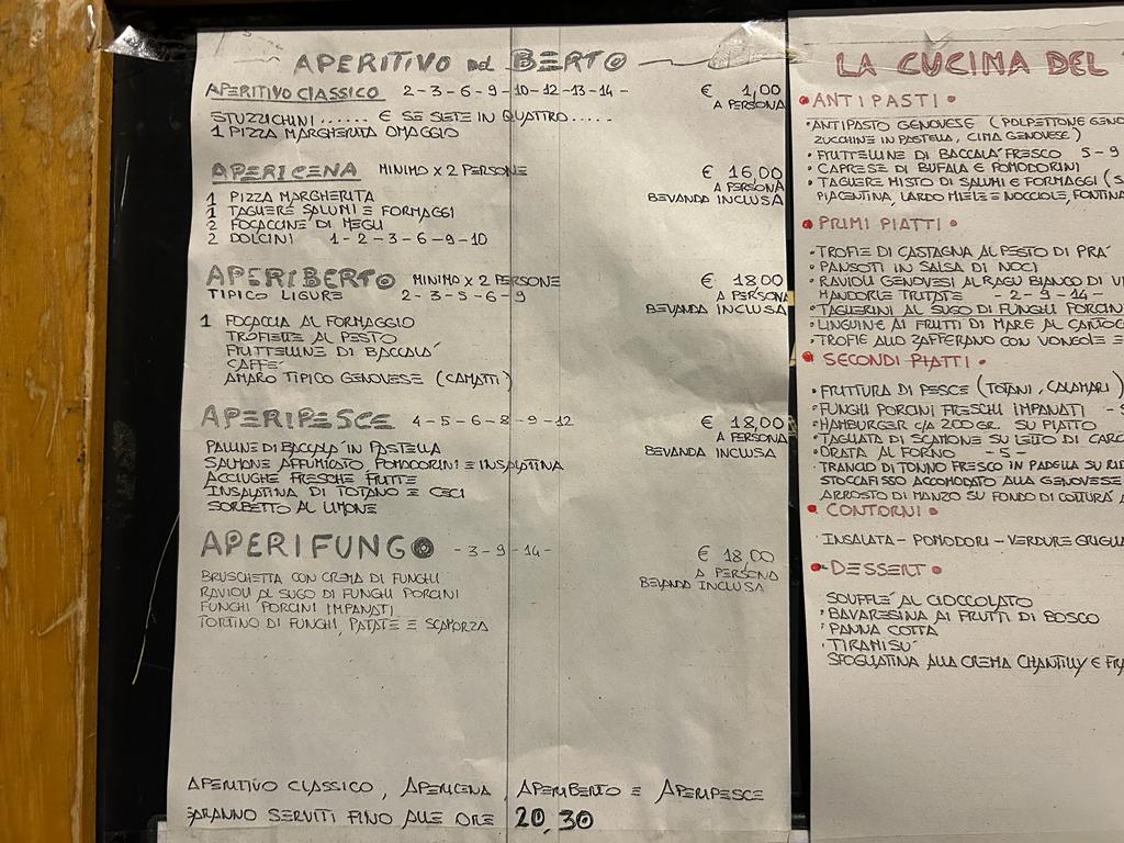 The selection is designed to tempt all kinds of cravings, from fresh seafood caught right off the Ligurian coast to mouthwatering pasta dishes that will make you feel like you're dining in a cozy trattoria in the Italian countryside. Don’t miss the local specialties that truly shine, with ingredients sourced from nearby markets, ensuring freshness in every bite. With a warm and inviting atmosphere, the dishes at Bar Berto offer a culinary journey that’s both comforting and exciting.
